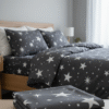 A soft printed bedsheet set with a calm night sky design. The dark base and star patterns give your room a cozy, relaxed feel while keeping it stylish. The fabric is smooth, comfortable on the skin, and fits neatly on the bed for an easy, clean look.